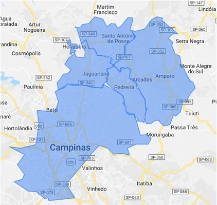 Interior de São Paulo: Jaguariúna, Amparo, Pedreira, Sto. Antônio de Posse, Holambra e Campinas.